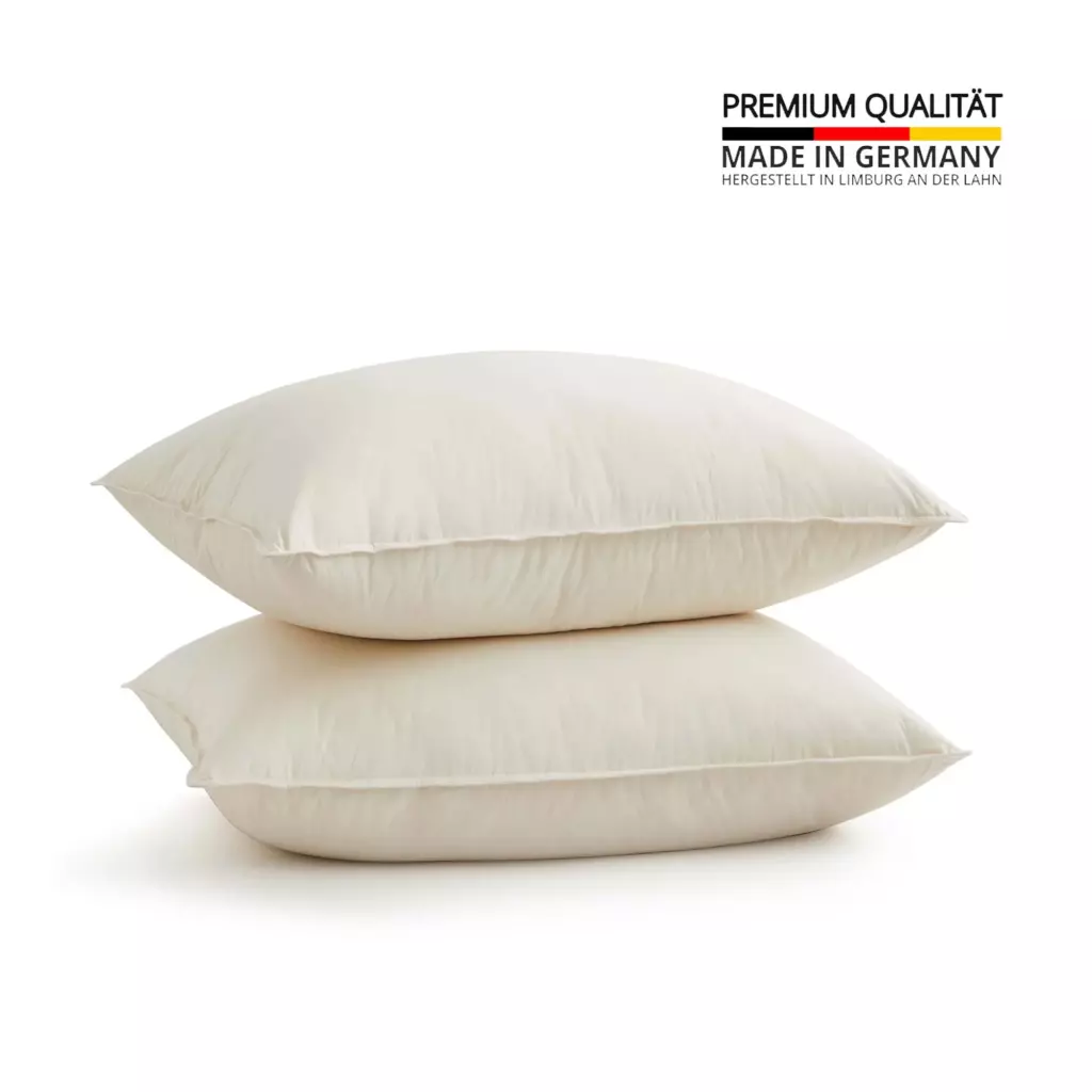 This European down pillow has a pillow in pillow design. This medium firm pillow is comprised of 100% goose feathers in the inner chamber and 90% DOWNPASS certified down in the outer chamber. This side sleeper pillow has a 100% GOTS-certified organic cotton cover, making it perfect for side and back sleepers.