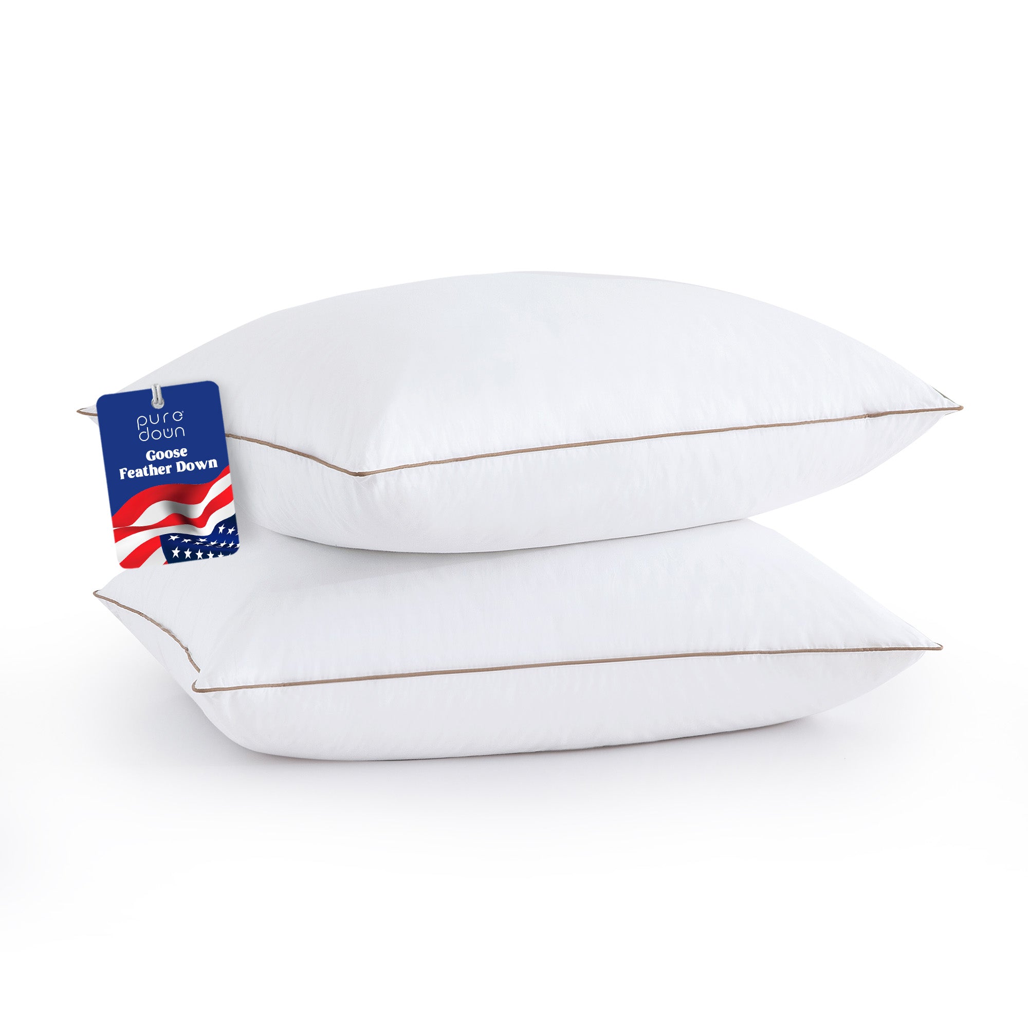 2 Pack Classic Goose Feather Bed Pillows with Soft Cover