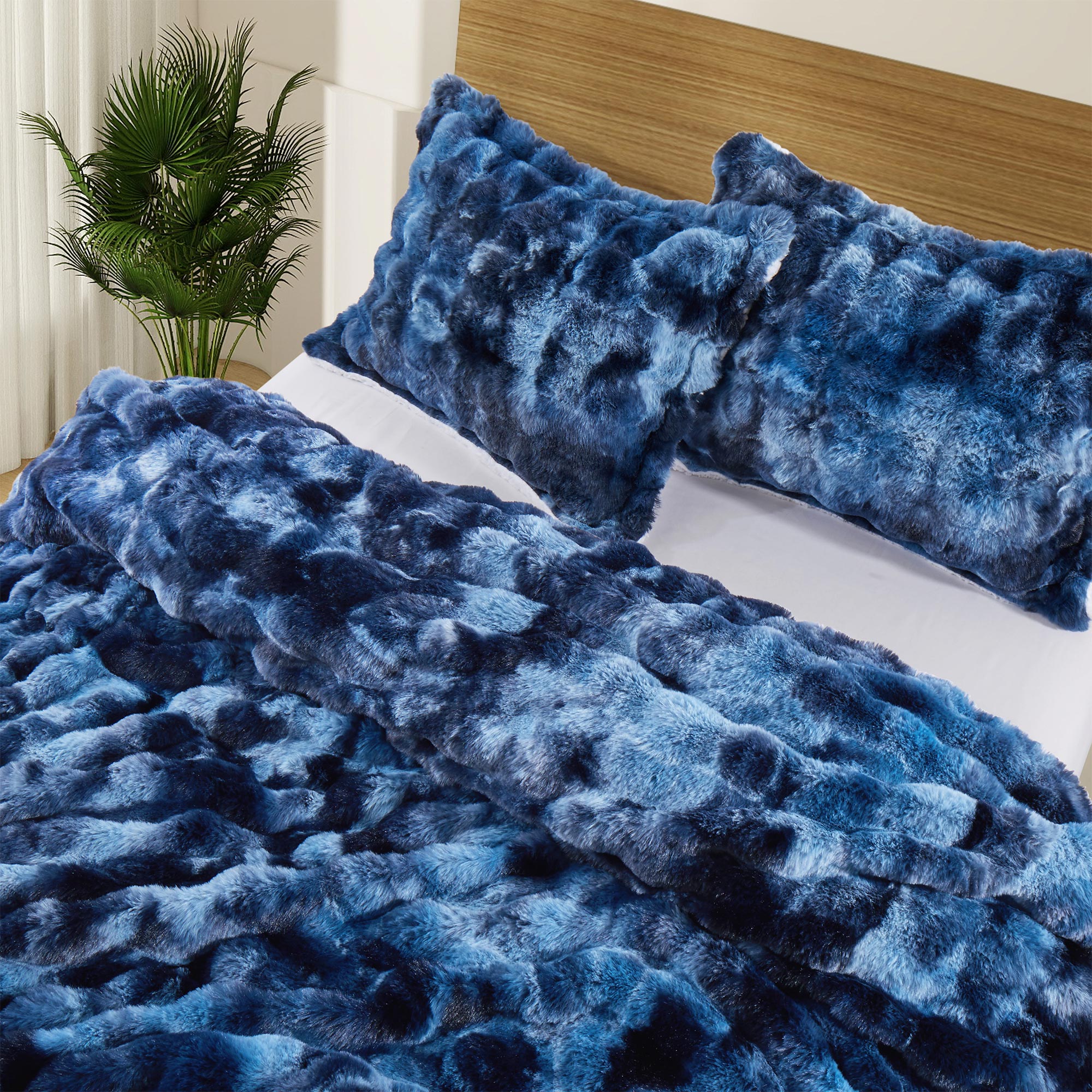 Fluffy Shaggy Reversible Faux Fur Comforter Set, Fuzzy Plush Bedding Set