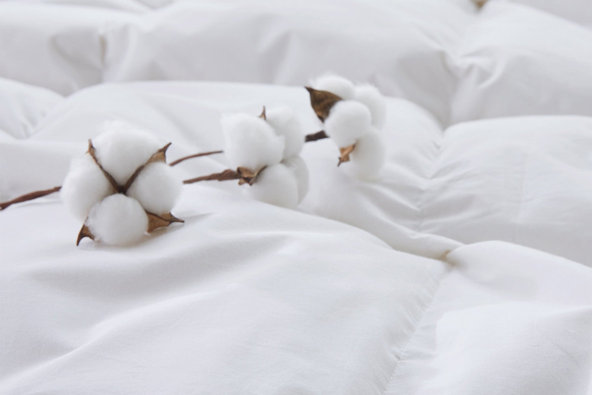 Our feather and down comforters with corner loops are made with a 100% GOTS-certified organic material cotton cover. This means the cotton is grown without harmful pesticides, synthetic fertilizers, or GMOs, ensuring a pure and natural sleep surface that's gentle on your skin and the environment.