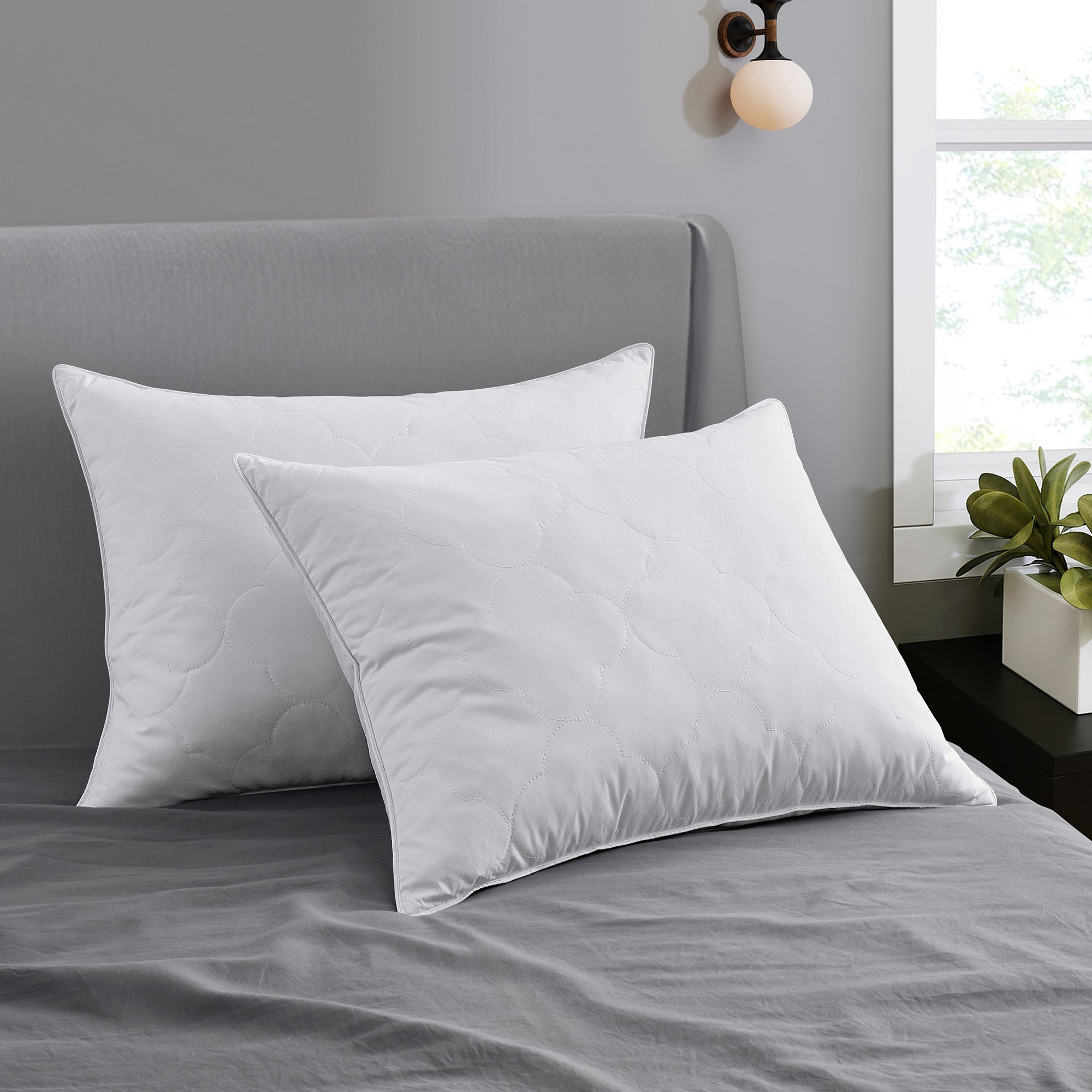2 Pack Gusseted & Classic Goose Feather Bed Pillows with Soft Cover