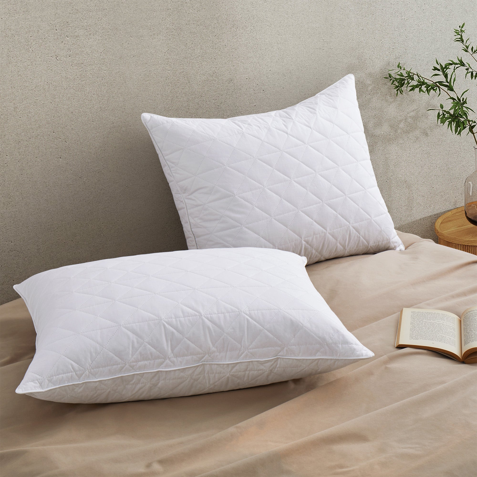 2 Pack Hotel Quality Goose Feather Bed Pillows for Side & Back Sleepers