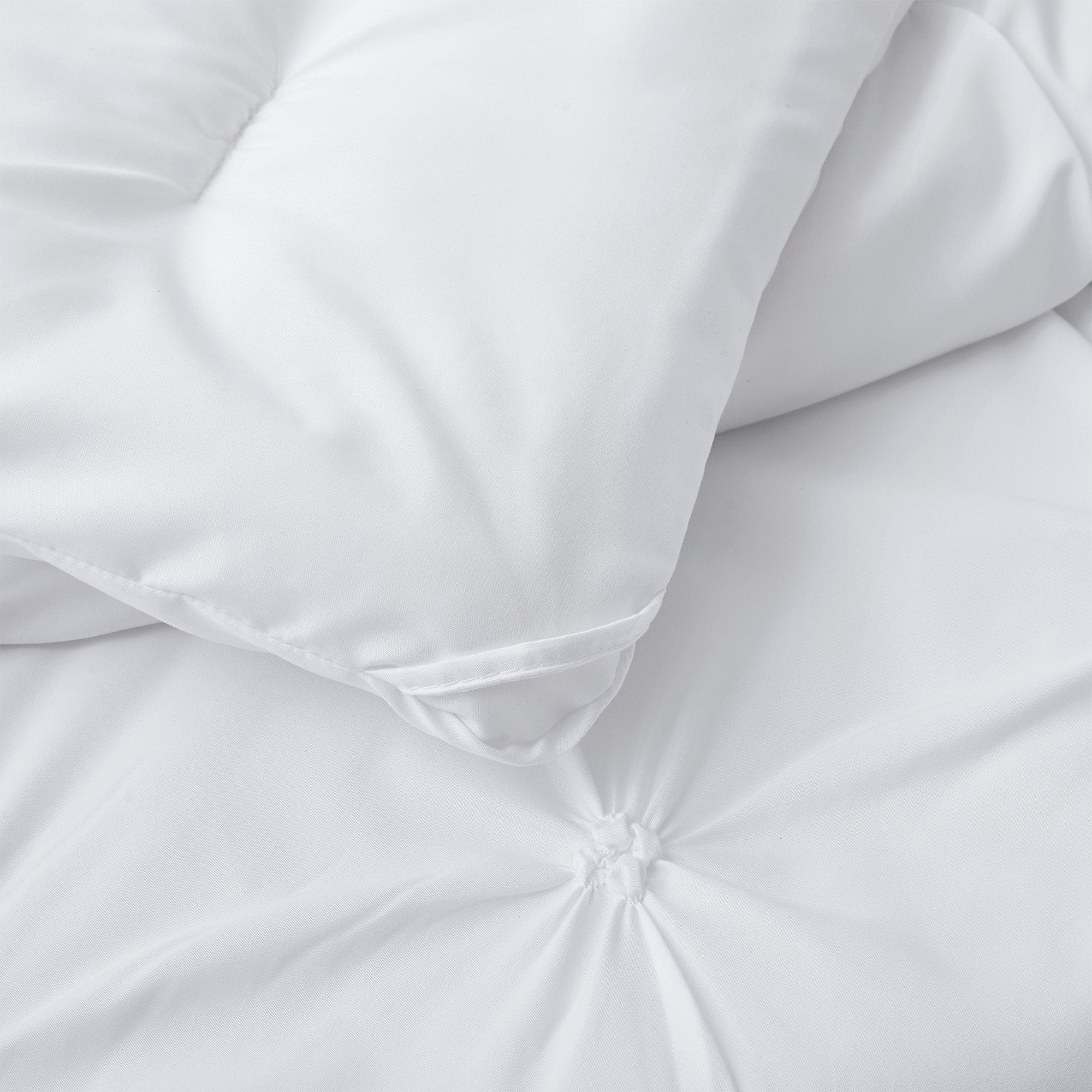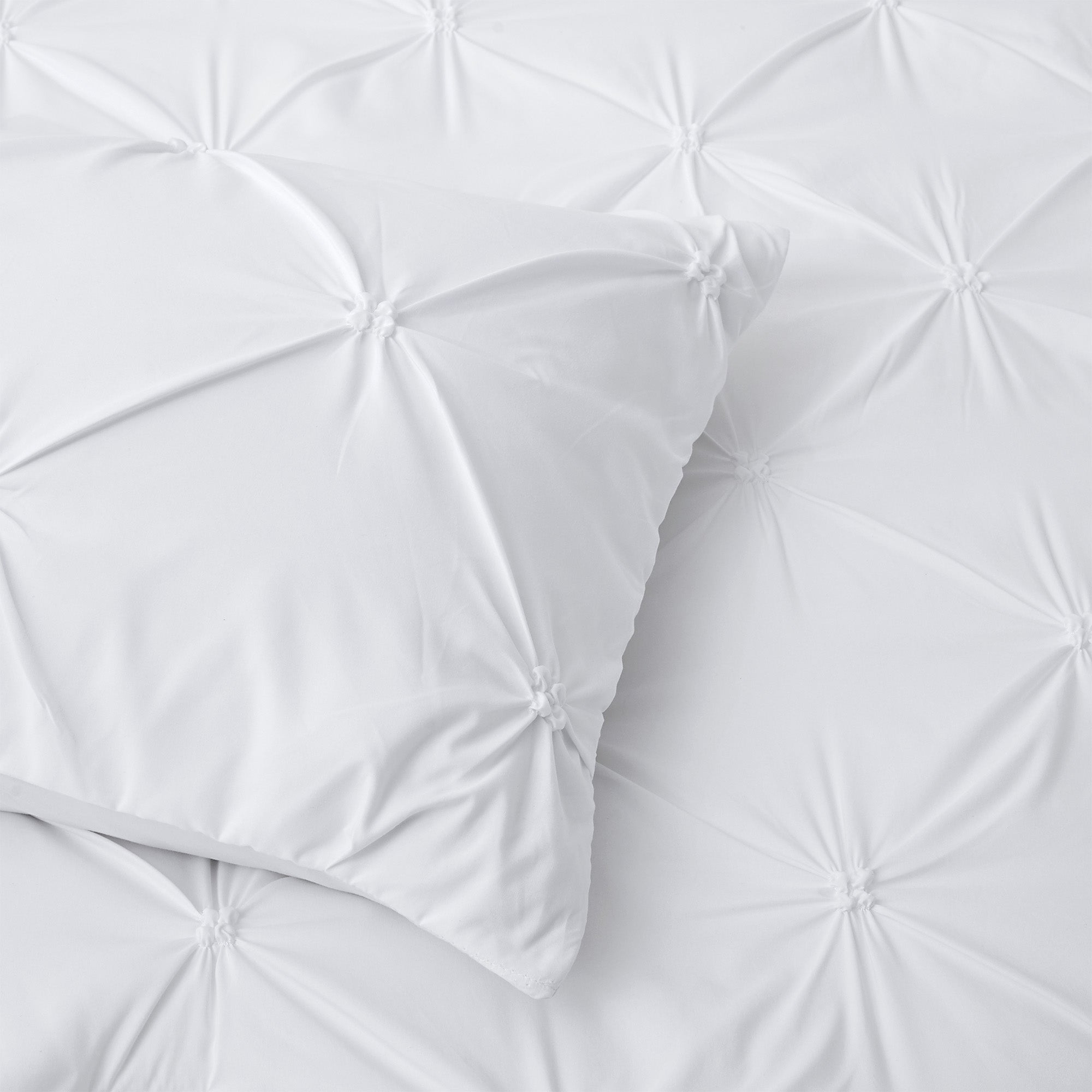 I've never owned a comforter in white color. The pintuck design is simple but so pretty!! This set brightened up my bedroom. The comforter isn't thick and is light, but it makes me feel warm and comfortable. It's perfect for between the seasons like spring and fall. I love them!!
