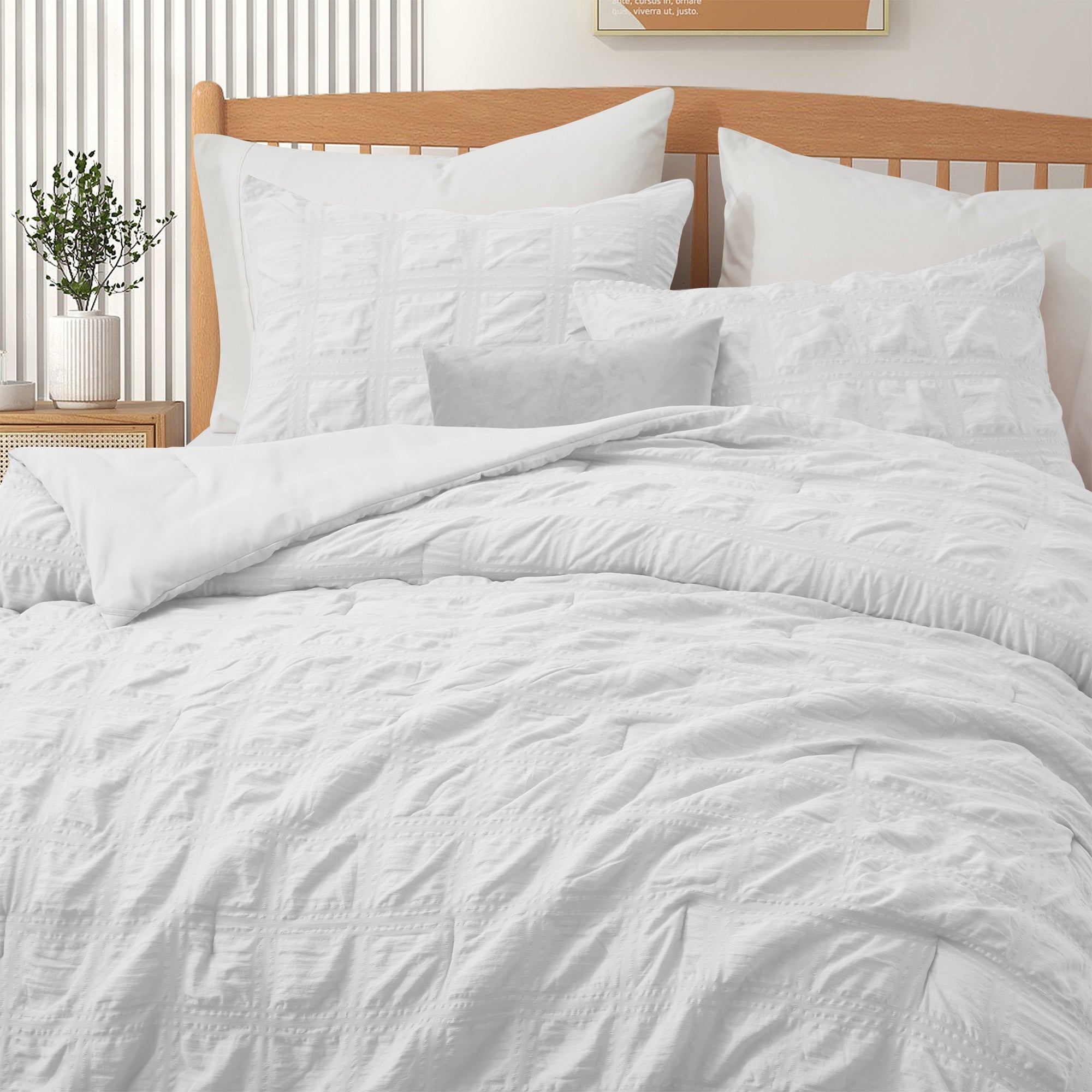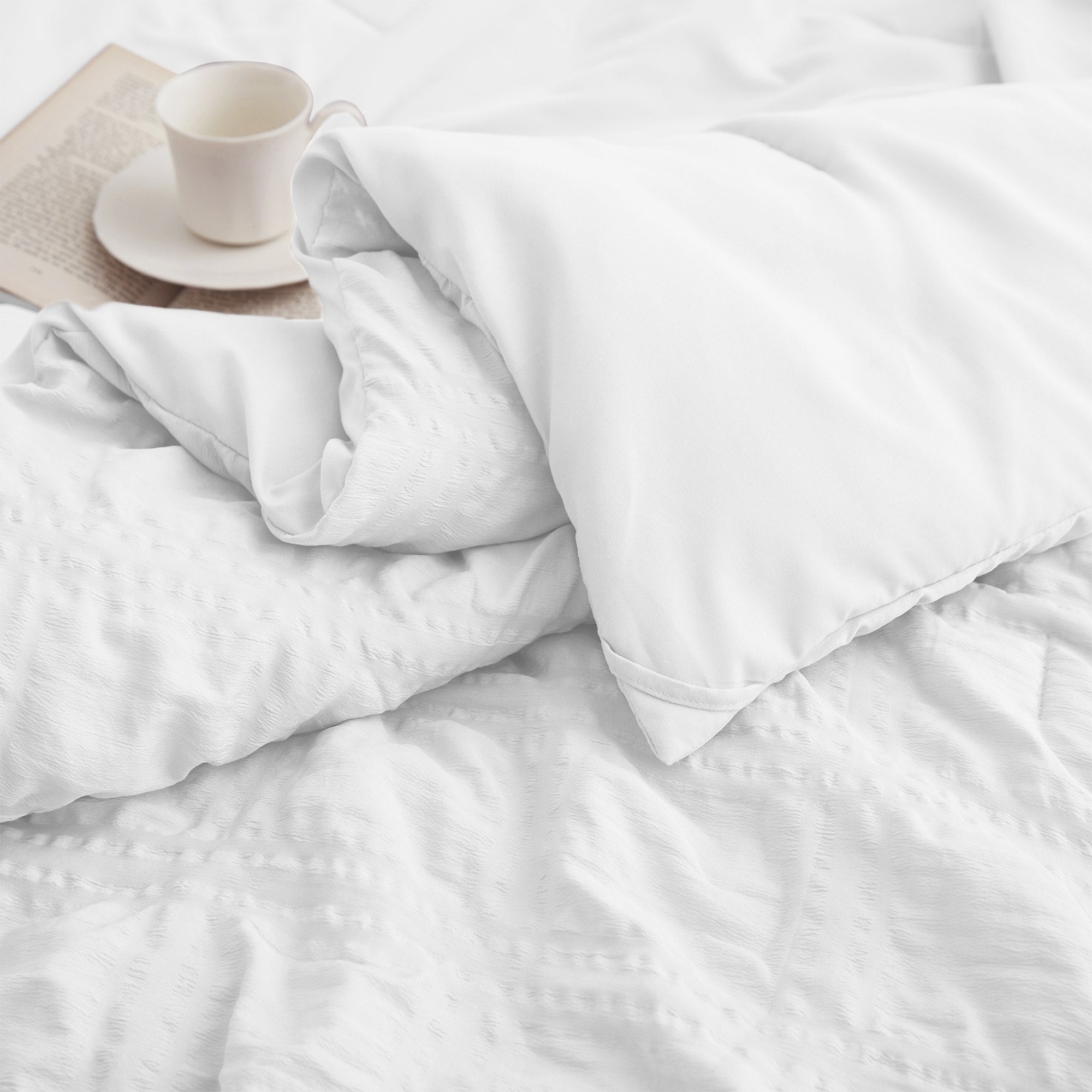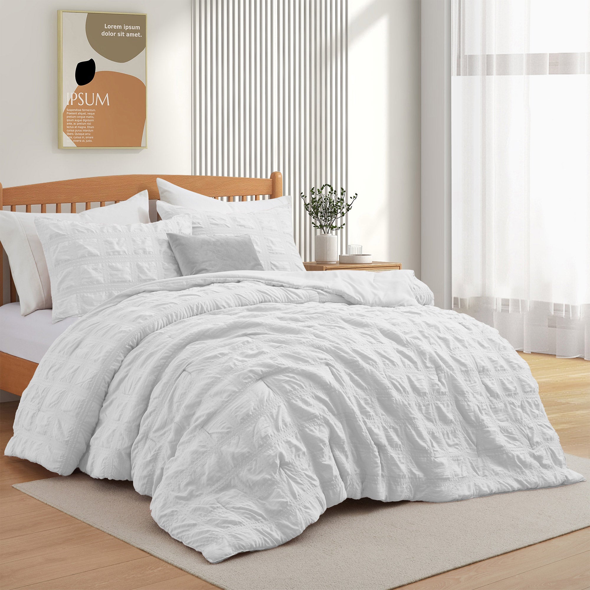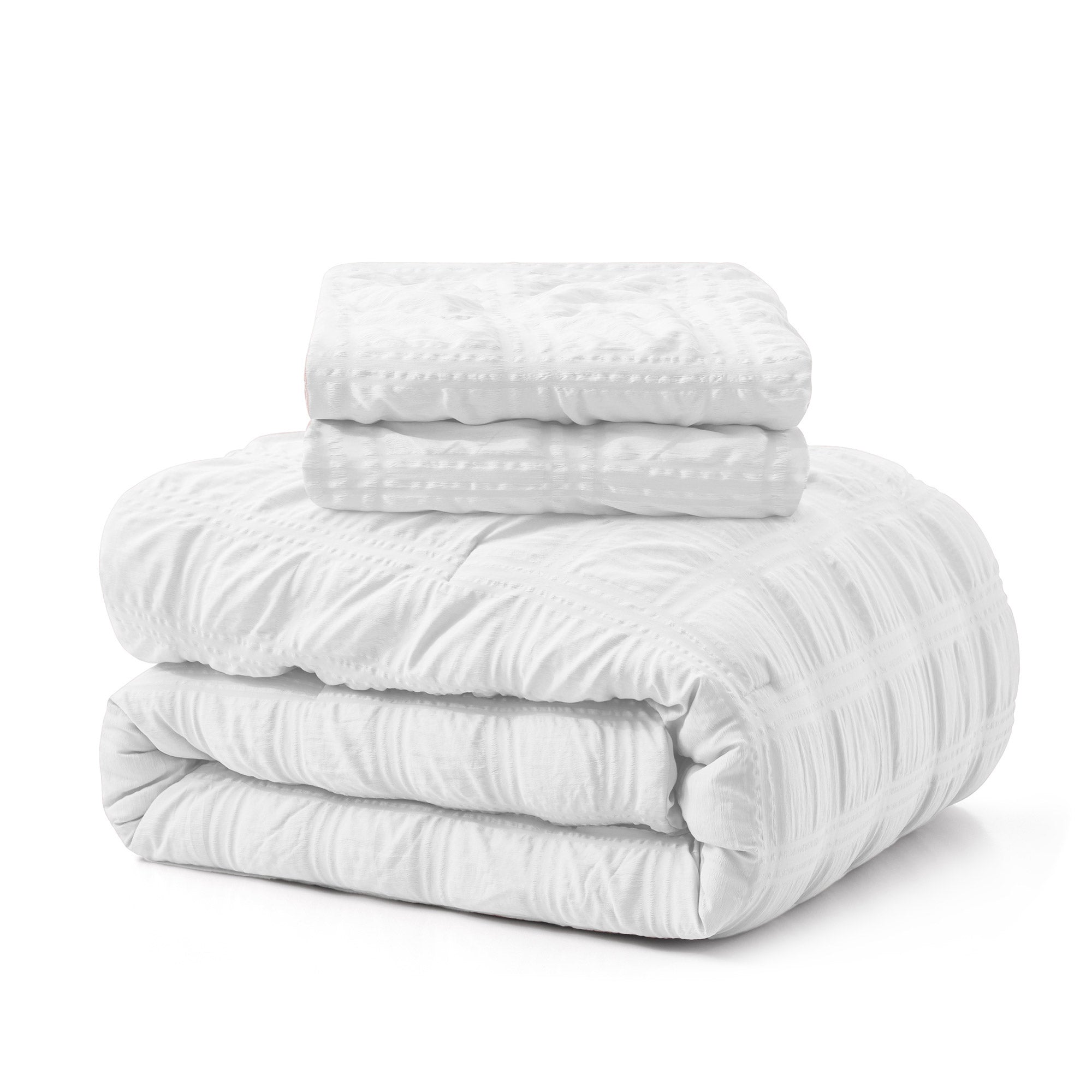 3-Piece Seersucker Bubble Ruffled Chic Textured Comforter Set, Lightweight Bedding Set