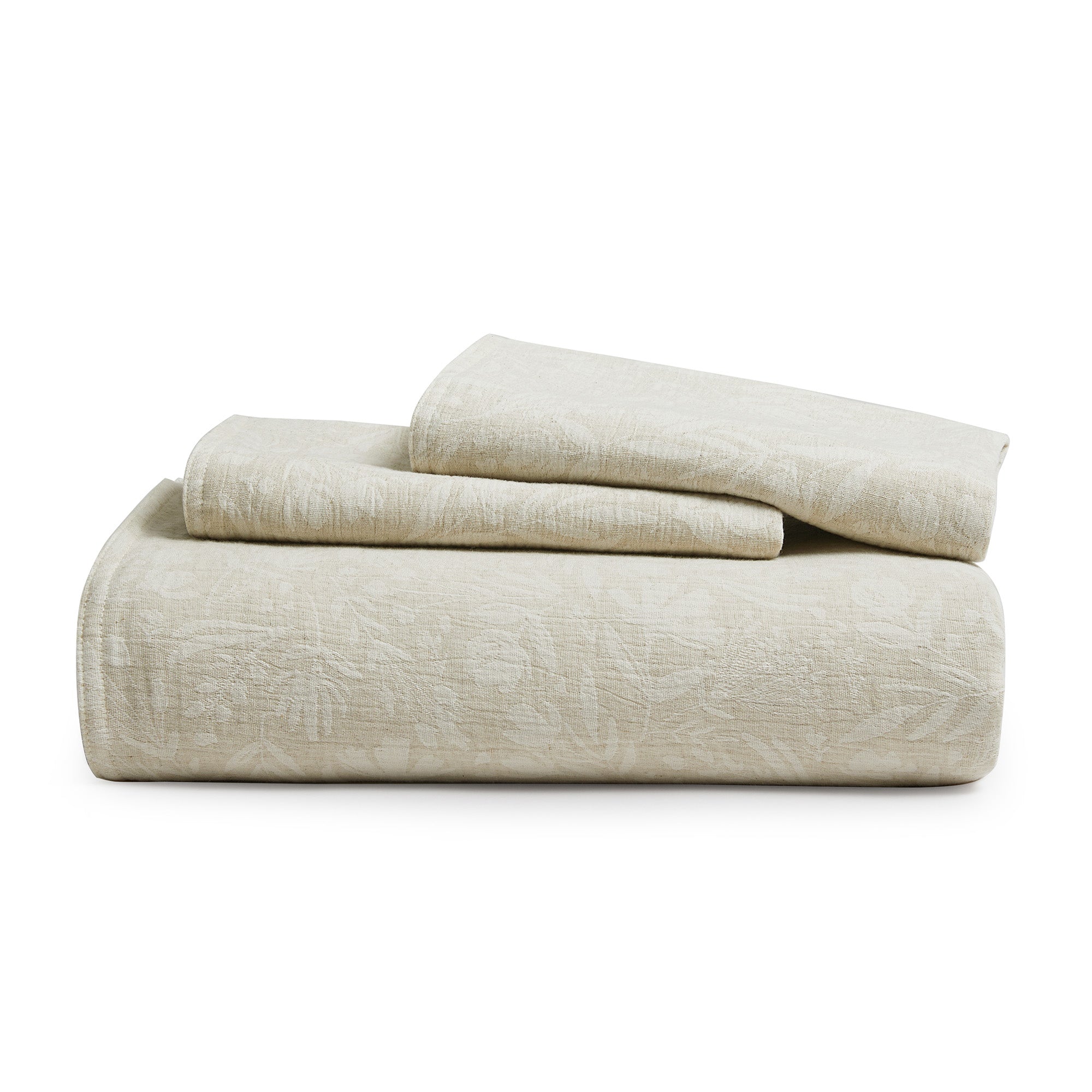 Floral Jacquard Cotton Linen Blend Duvet Cover Set, Bedding Set with Pillowcases
