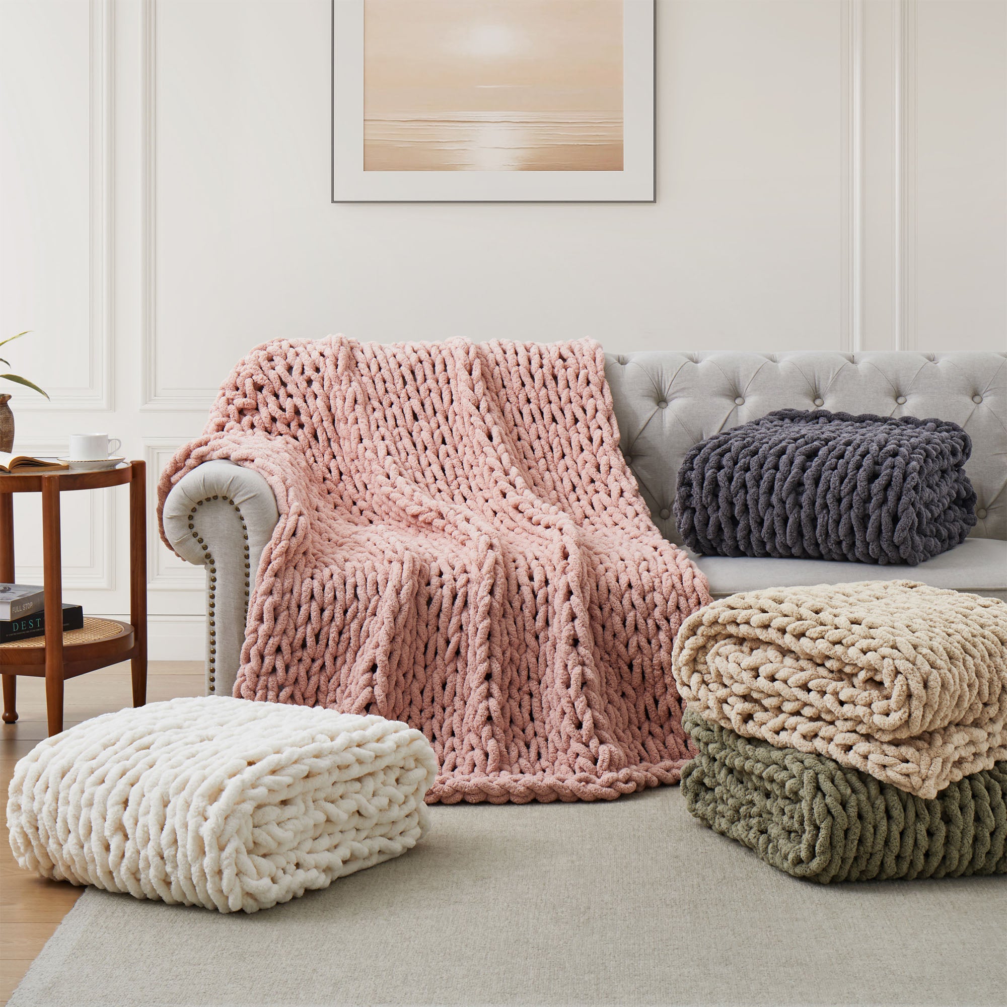 Handmade Chunky Knit Chenille Yarn Throw Blanket 50"x60"