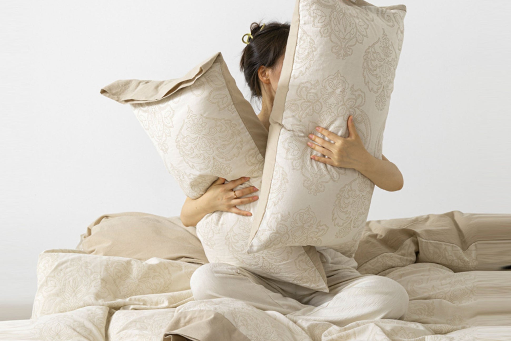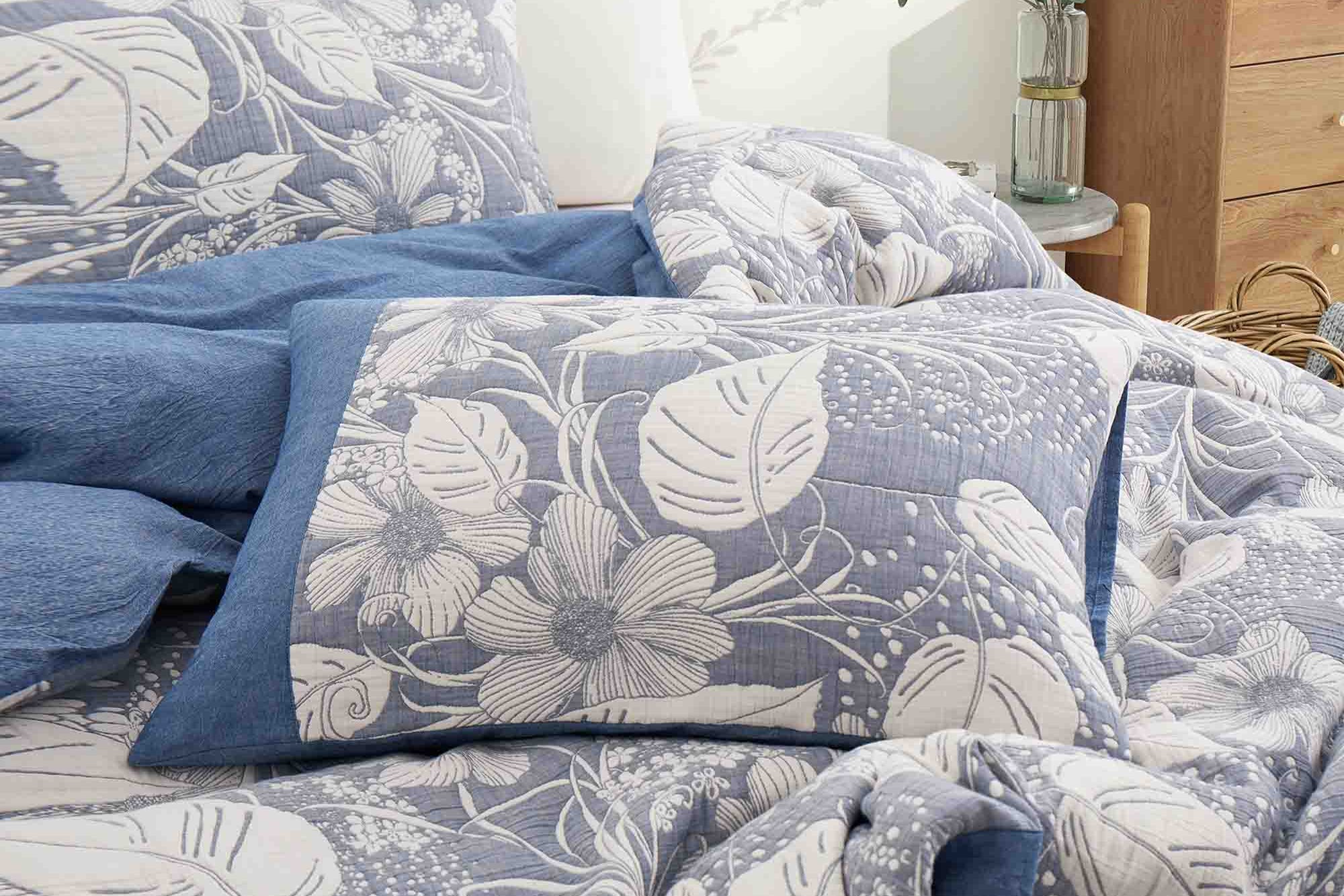 Gauze cotton has a softer, airier texture with a slightly crinkled finish, offering a lived-in, cozy feel that’s gentle on the skin.