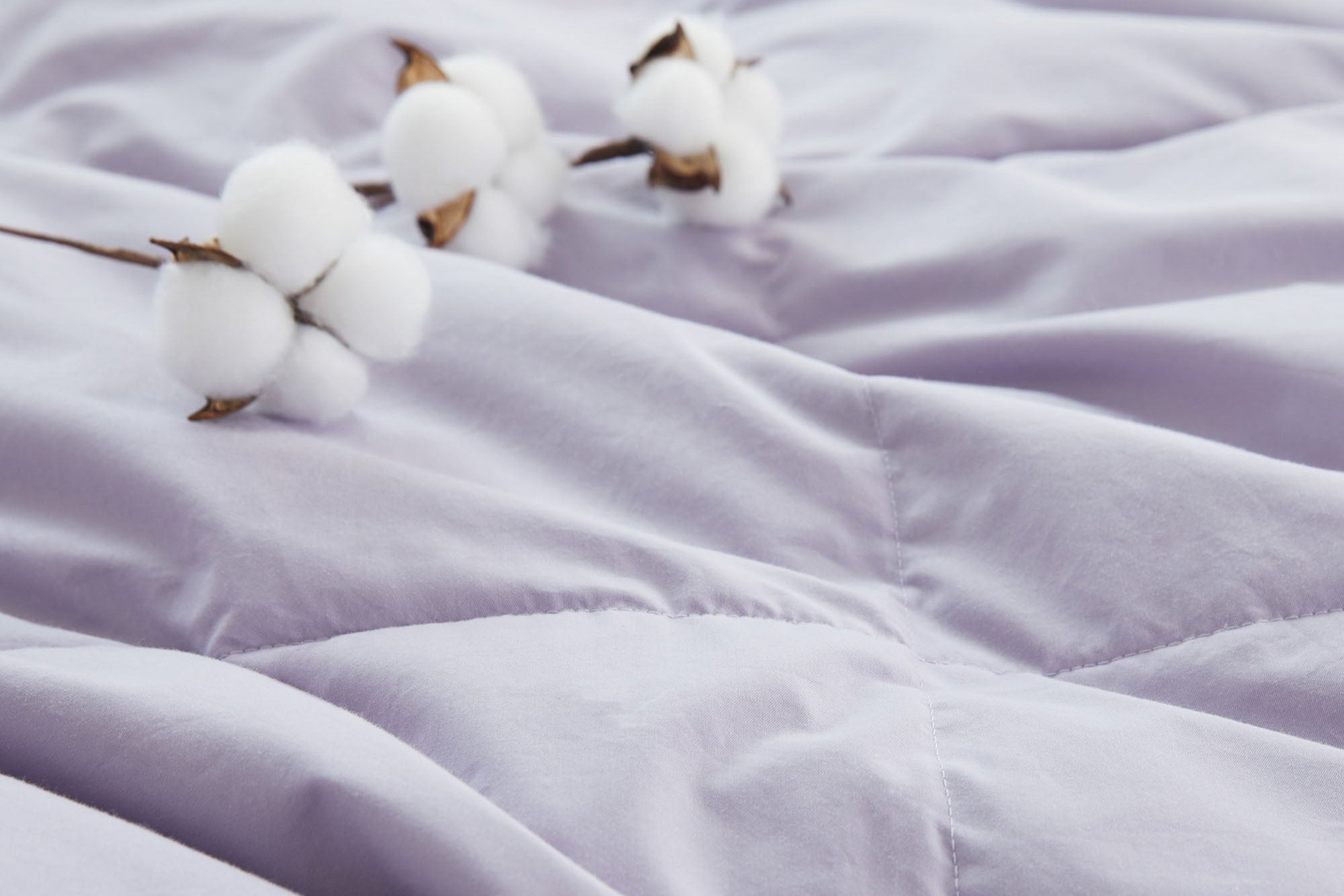 Our feather and down comforters with corner loops are made with a 100% GOTS-certified organic material cotton cover. This means the cotton is grown without harmful pesticides, synthetic fertilizers, or GMOs, ensuring a pure and natural sleep surface that's gentle on your skin and the environment.