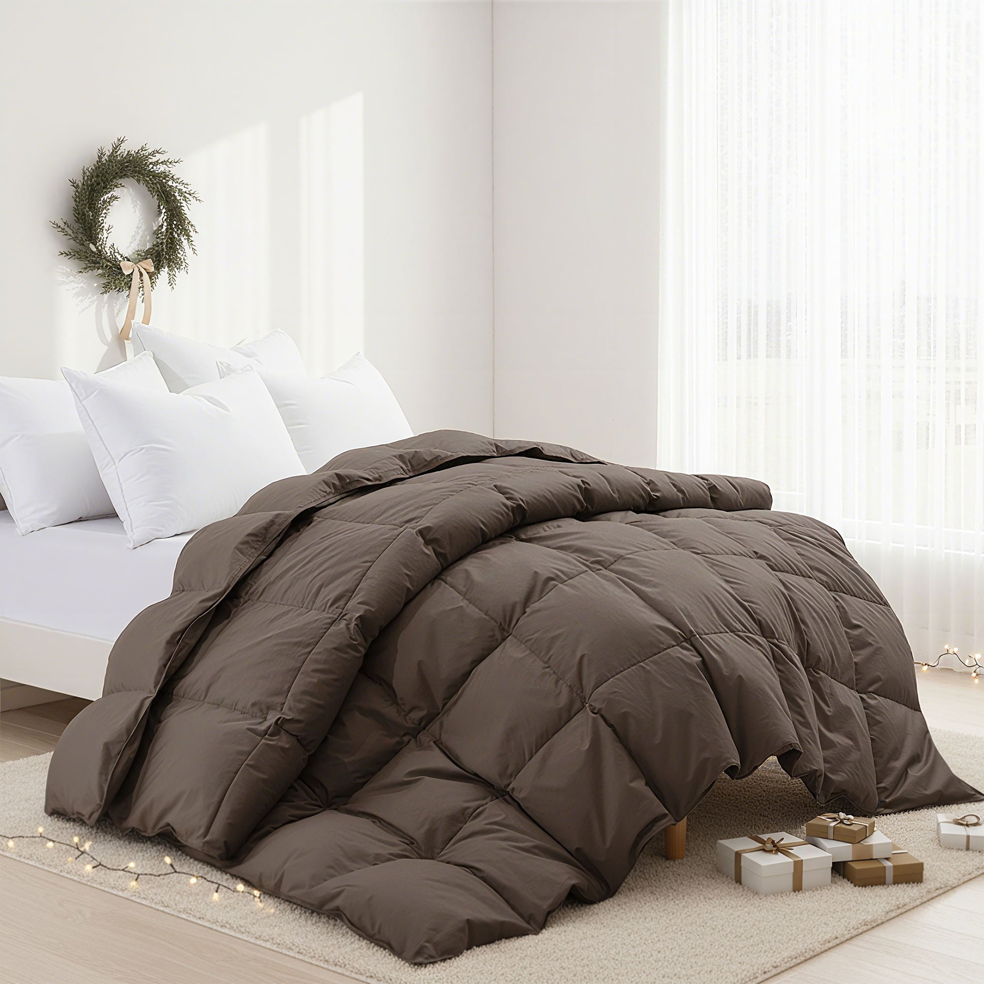 An organic cotton cover is naturally soft, breathable, and gentle on sensitive skin. It promotes excellent air circulation and helps regulate your body temperature, making this down feather comforter with corner ties a sustainable choice for you and the planet.