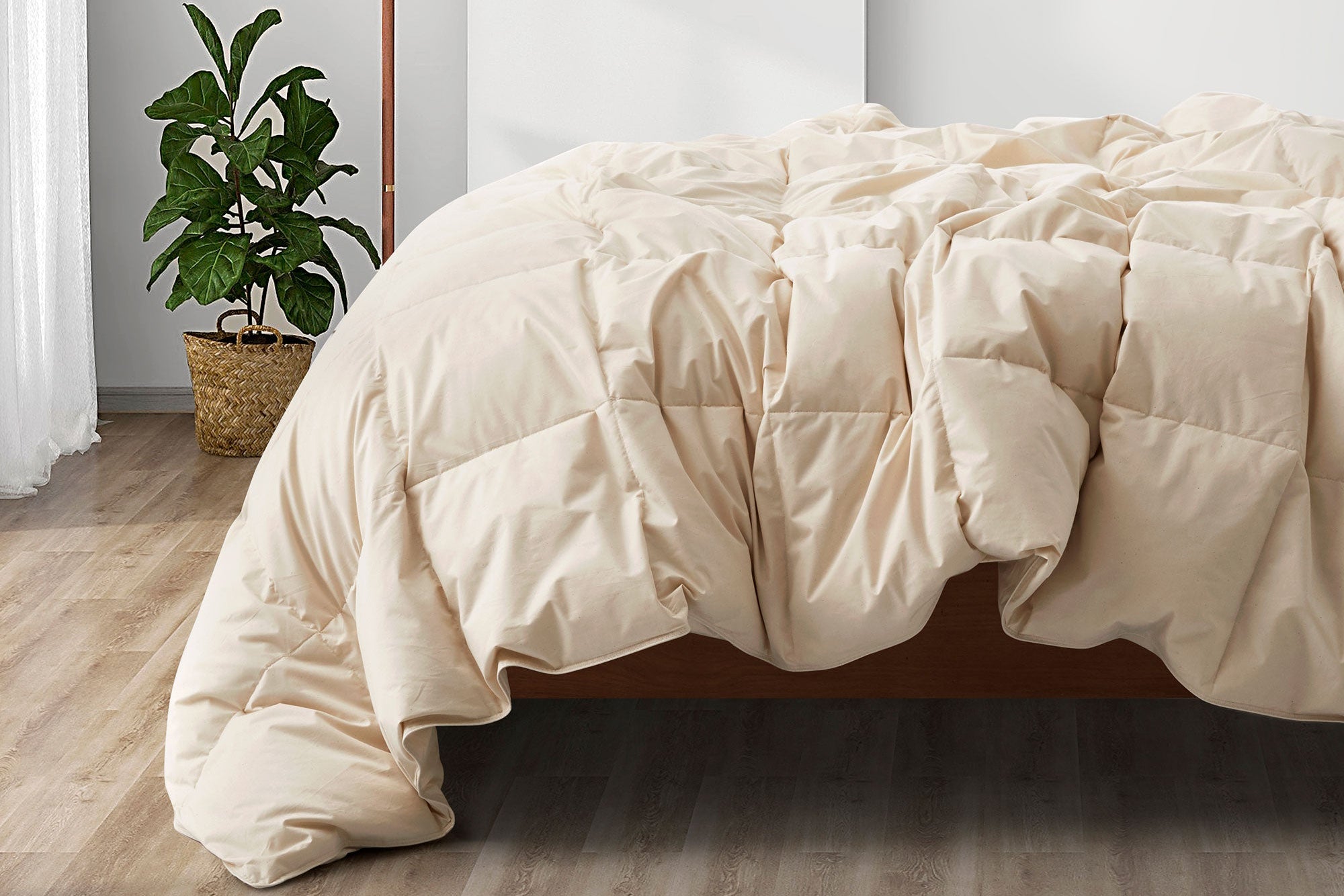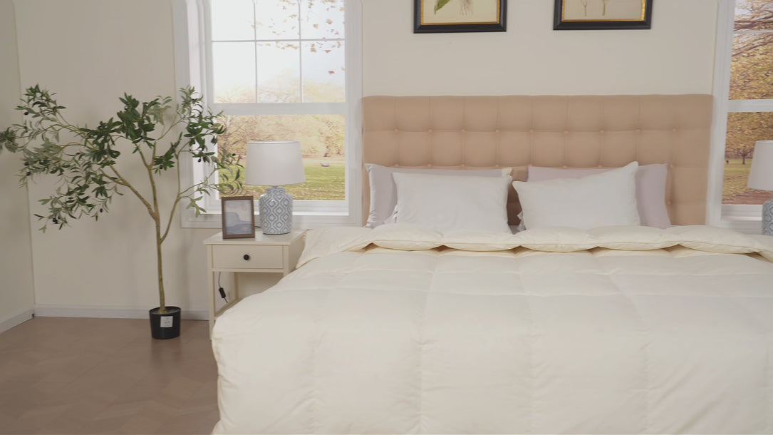 This down comforter is made with a 100% GOTS-certified organic material cotton cover. This means the cotton is grown without harmful pesticides, synthetic fertilizers, or GMOs, ensuring a pure and natural sleep surface that's gentle on your skin and the environment.