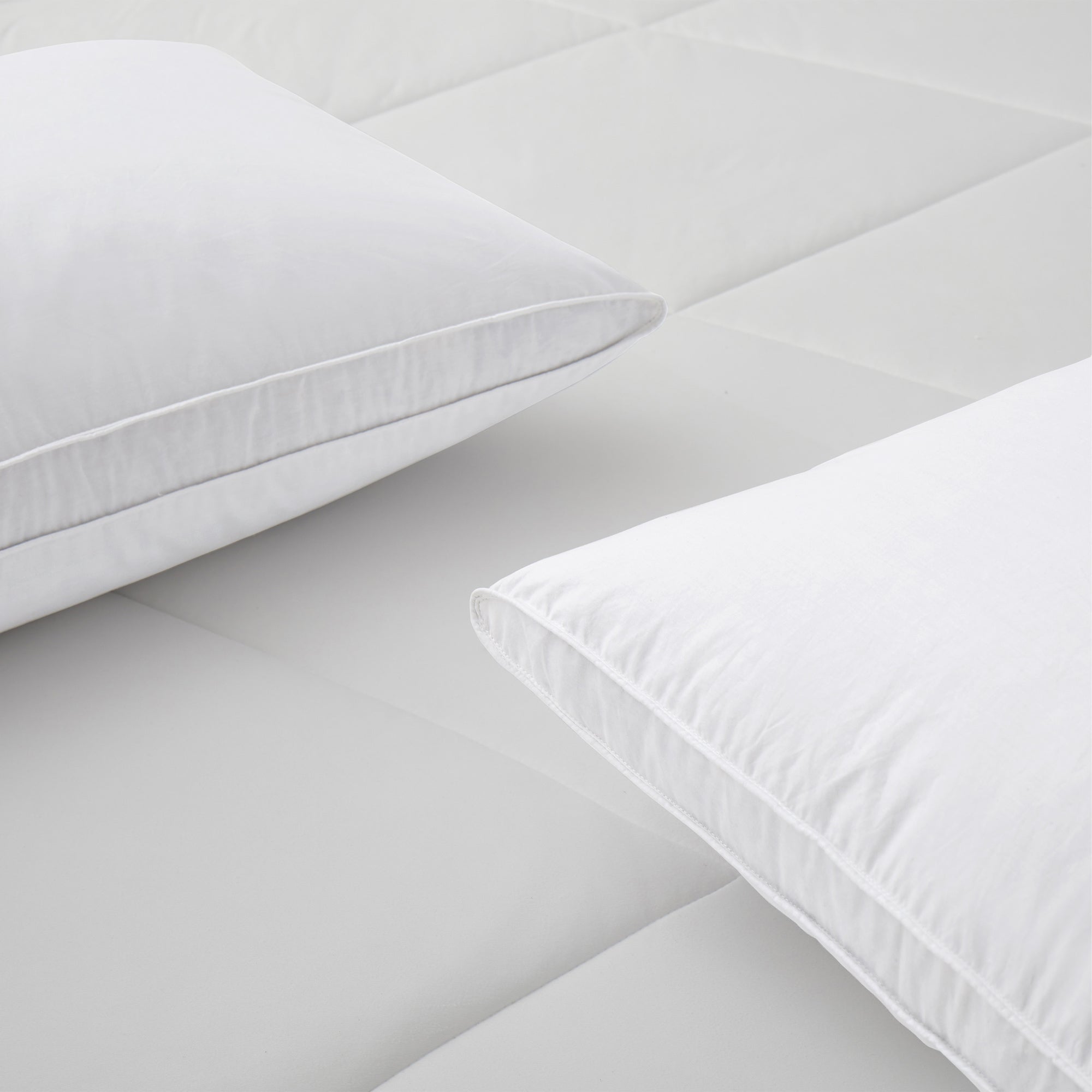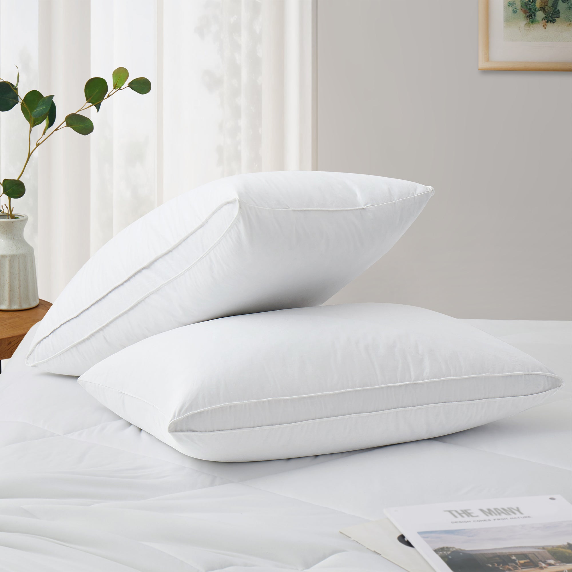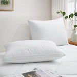 Set of 2 Goose Down Feather Oval Gusset Bed Pillows with 100% Cotton Cover - White