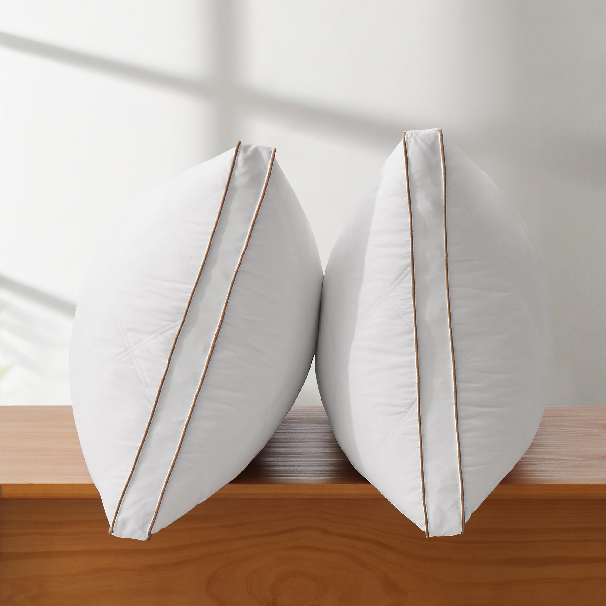 Set of 2 Goose Feather Down Gusseted Bed Pillow with Breathable Cotton Cover
